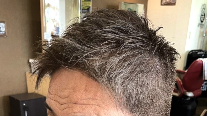 白髪を黒く染めず黒髪をトーンアップして、白髪にグレーの色味が入ることで全体を馴染ませるカラーになります。白髪の多い方に向いてます。